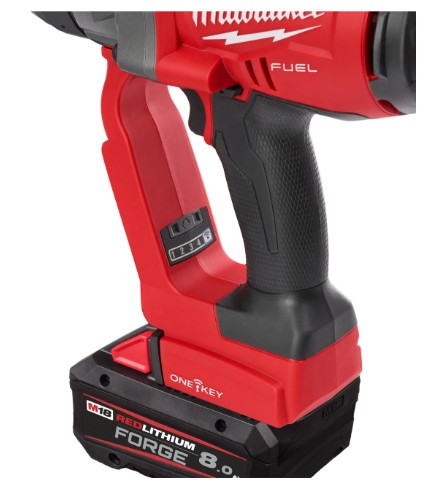 Primera llave de impact de alto par a batería del mercado que reemplaza herramientas con cable, a gasolina y neumáticas. Proporciona hasta 2.033Nm de par de apriete en la mitad de peso y tamaño que una herramienta con cable, a gasolina o neumática. Proporciona hasta 2.400 Nm de par de desapriete, permitiendo trabajar con tuercas M42. Sistema Drive control que permite seleccionar entre 4 modos diferentes de velocidad y par de apriete. Sensor de impacto integrado. Tecnología ONE-KEY que ofrece localización y seguridad, junto con el control de inventario, también cuenta con una función de bloqueo remoto. Funciona con todas las baterías M18.
